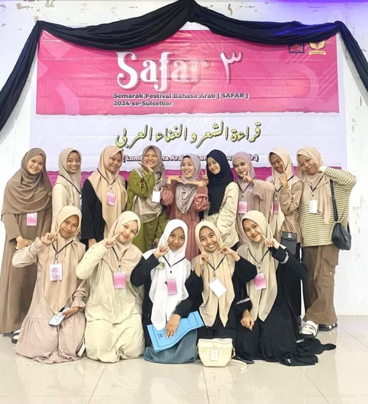 Media Center As’adiyah – Santriwati Madrasah Aliyah Swasta (MAS) As’adiyah Putri Pusat Sengkang berhasil meraih sejumlah prestasi dalam ajang Semarak Festival Bahasa Arab (SAFAR) III yang diselenggarakan di Institut Agama Islam Negeri (IAIN) Parepare. Kegiatan tahunan ini berlangsung dari tanggal 23 hingga 26 Oktober 2024, mempertemukan pelajar dari seluruh wilayah Sulawesi Selatan dan Barat (Sulselbar) dalam berbagai kompetisi bertema Bahasa Arab.