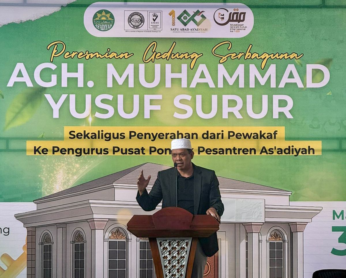 Media Center As’adiyah – Pondok Pesantren As’adiyah meresmikan Gedung Serbaguna AG. H. Muh. Yusuf Surur sekaligus menerima penyerahan wakaf dari keluarga besar Surur, Selasa (30/9/2025), di Kampus III As’adiyah Macanang.