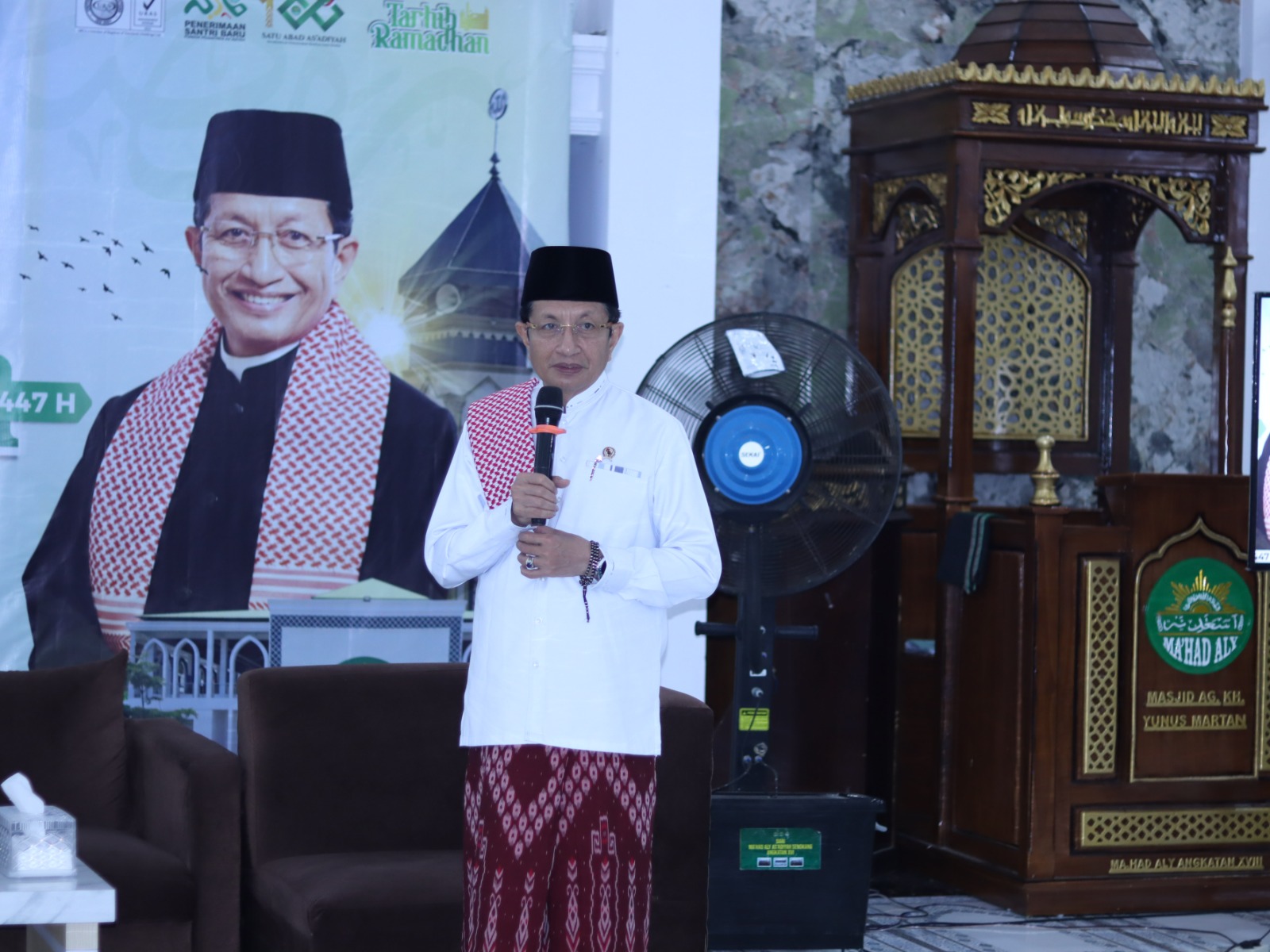AG. Prof. Dr. KH. Nasaruddin Umar, MA, selaku Ketua Umum Pondok Pesantren As’adiyah. Dalam arahannya, menegaskan bahwa mubaligh dan imam tarawih As’adiyah harus menjadi dai yang berilmu, berakhlak mulia, serta menjunjung tinggi nilai-nilai moderasi beragama.